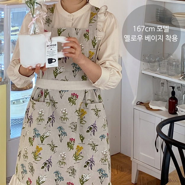 AURACASA Herb frill linen Apron 허브 프릴 린넨 x끈 원피스 앞치마